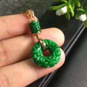 糯冰种满绿翡翠平安扣吊坠 尺寸39.8*17.7*6.8mm