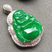 冰种满绿佛公翡翠吊坠 18k白金奢华钻石镶嵌豪华镶嵌 大小:19.4*16.9*4mm