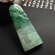 糯冰种飘绿松下悟道 翡翠吊坠 尺寸67-26-7毫米