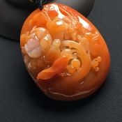 巧雕红翡花开富贵 翡翠吊坠 尺寸:57-45-13毫米