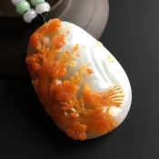 冰糯种黄加绿悠然自得翡翠挂件 尺寸:71-40-9毫米