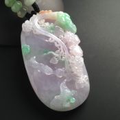 巧雕三彩花鸟 翡翠吊坠 尺寸60-32-12毫米