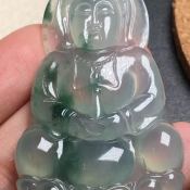 糯冰种春带彩大日如来 翡翠吊坠 尺寸68-41-10毫米