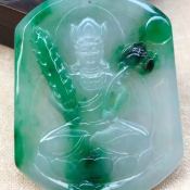 老坑料冰种飘绿虚空藏菩萨 翡翠吊坠 细腻起光
