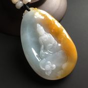巧雕黄加绿悠然自得 翡翠吊坠 尺寸:57-39-11.5毫米