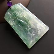 冰种飘绿花大好河山 翡翠吊坠 尺寸:70-48-6.3毫米