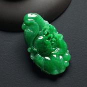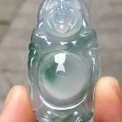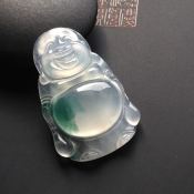 老坑料高冰种飘花弥勒佛 佛翡翠吊坠