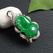 豆种满绿 葫芦翡翠吊坠18k金豪华镶嵌
