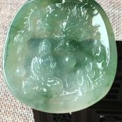 巧雕带色鸟语花香 翡翠吊坠 尺寸:68-40-13.7毫米