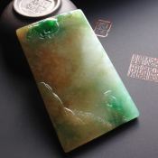 糯冰种黄加绿伯乐相马 翡翠吊坠 尺寸60-37-5毫米