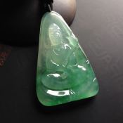 阳绿百财翡翠吊坠 白金扣 尺寸52-21-11毫米