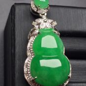 冰种阳绿 葫芦翡翠吊坠真金真钻镶嵌