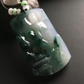 冰种阳绿山水牌 翡翠吊坠 裸石大小:31.8*20.3*3mm