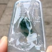 糯冰种双彩松下抚琴 翡翠吊坠 尺寸55-46.5-8毫米