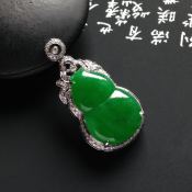 冰种阳绿 福禄翡翠吊坠 18k白金配真钻镶嵌 尺寸21-14-3毫米 连金尺寸30-16-7毫米