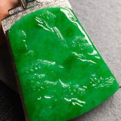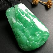 阳绿深山会友翡翠挂件 尺寸55-38-12毫米