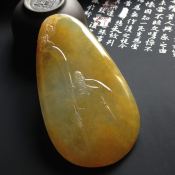 冰种黄翡关公吊坠 尺寸83-45-7毫米