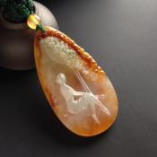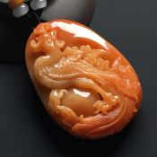 巧雕红翡丹凤朝阳挂件 尺寸:60-44-14.4毫米