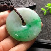 冰种飘绿翡翠平安扣吊坠 尺寸53-6.5毫米