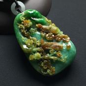 巧雕黄加绿鸟语花香翡翠吊坠 尺寸:58-37-14.2毫米