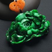 巧雕满色花开富贵翡翠吊坠 尺寸:37-55.8-11.5毫米