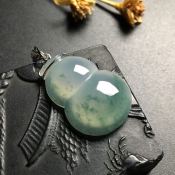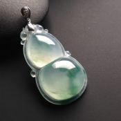 冰种飘花 葫芦翡翠吊坠 白金扣 尺寸25-18-8毫米