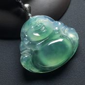 冰种飘绿花笑佛 翡翠吊坠 尺寸:35-39.6-7.7毫米