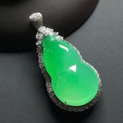 冰种阳绿葫芦 翡翠吊坠 整体尺寸:44.5-21-12.6
