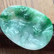 冰糯种飘阳绿山水牌 翡翠吊坠 尺寸55.5*34.5*4.6