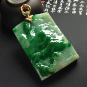 冰满绿山水 翡翠吊坠 尺寸68*39.3*6.3