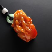 巧雕红翡生肖蛇大吊坠 尺寸:48-43-12.4毫米