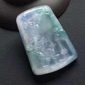 冰种飘花悠然自得 翡翠吊坠 尺寸:50-34.5-7毫米
