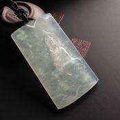 冰种飘绿花山水牌 翡翠吊坠 尺寸63-44-7.5毫米