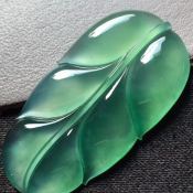 玻璃种晴绿叶子 翡翠挂件 尺寸35.8*19.5*3.5