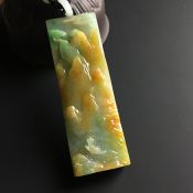黄加绿山水牌 翡翠吊坠 尺寸72-25-8.5毫米