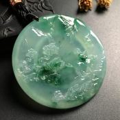 老坑料高冰种飘花 前程似锦翡翠吊坠