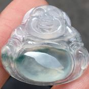 冰种雪花棉笑佛 翡翠吊坠 小巧 尺寸: 29-28.5-7.5mm
