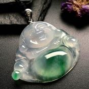 冰带色笑口常开 翡翠吊坠 尺寸: 32-38-6mm