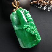 糯冰种满绿 大好河山翡翠吊坠18K金镶嵌 裸石53-27-10毫米