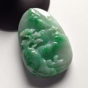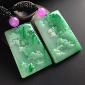 冰种阳绿山水牌 翡翠吊坠 裸石大小:31.8*20.3*3mm