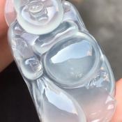 冰种雪花棉飘绿花悠悠自得翡翠挂件 尺寸32-28-5毫米