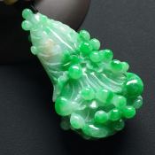 巧雕阳绿财源滚滚翡翠吊坠 尺寸:66-37-20.5毫米