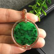 糯种阳绿 平安无事圆牌翡翠吊坠 尺寸51.2*36.6*2.8mm