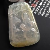 巧雕黄加绿忠义关公 翡翠挂件 尺寸:75-51-9毫米