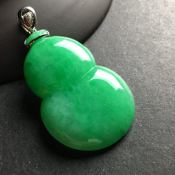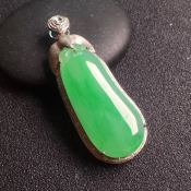 冰种阳绿 葫芦翡翠吊坠 白金扣 尺寸39-26-6毫米