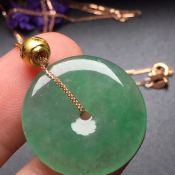阳绿冰种平安扣 翡翠挂件 真金真钻镶嵌