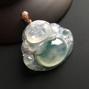 冰种飘花佛公翡翠吊坠 尺寸28-32-7毫米