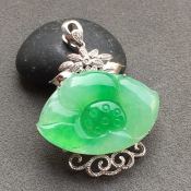 冰种阳绿飘花 翡翠吊坠 尺寸28.4*19.1*6.7mm
