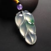 冰种飘花叶子 翡翠挂件 尺寸41-23-5mm