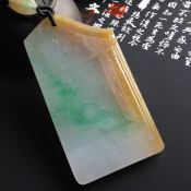 糯冰种黄加绿高山流水 翡翠吊坠 尺寸77-42-7.5毫米